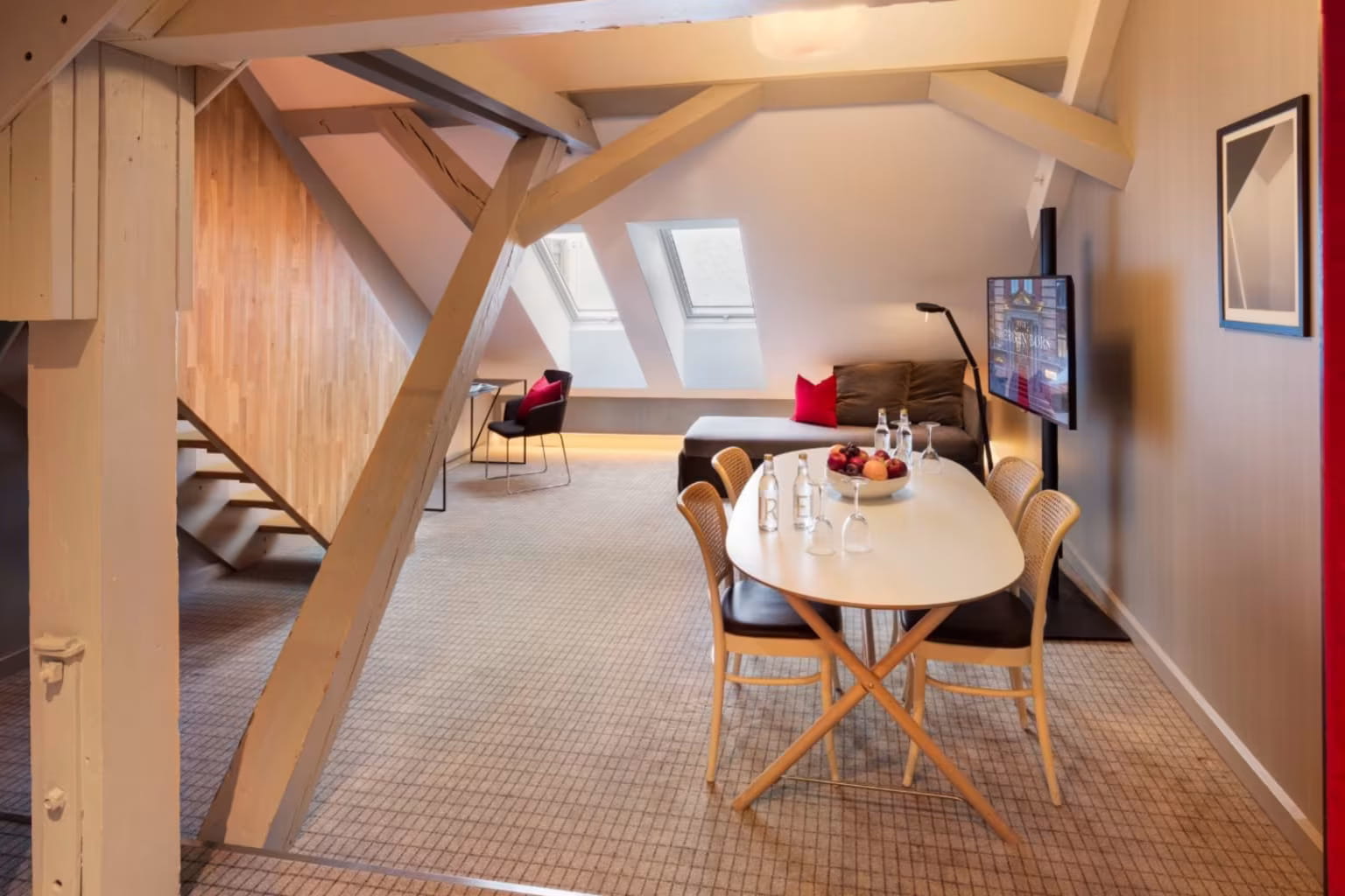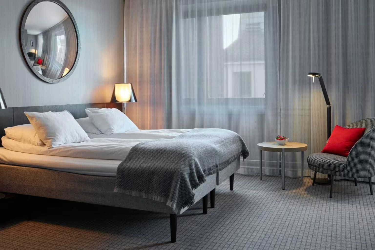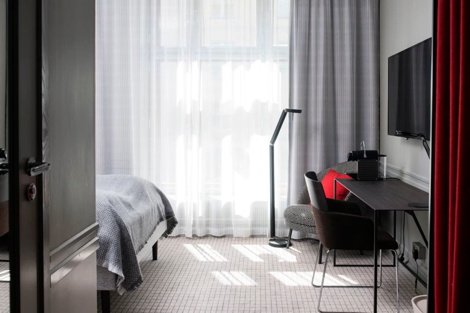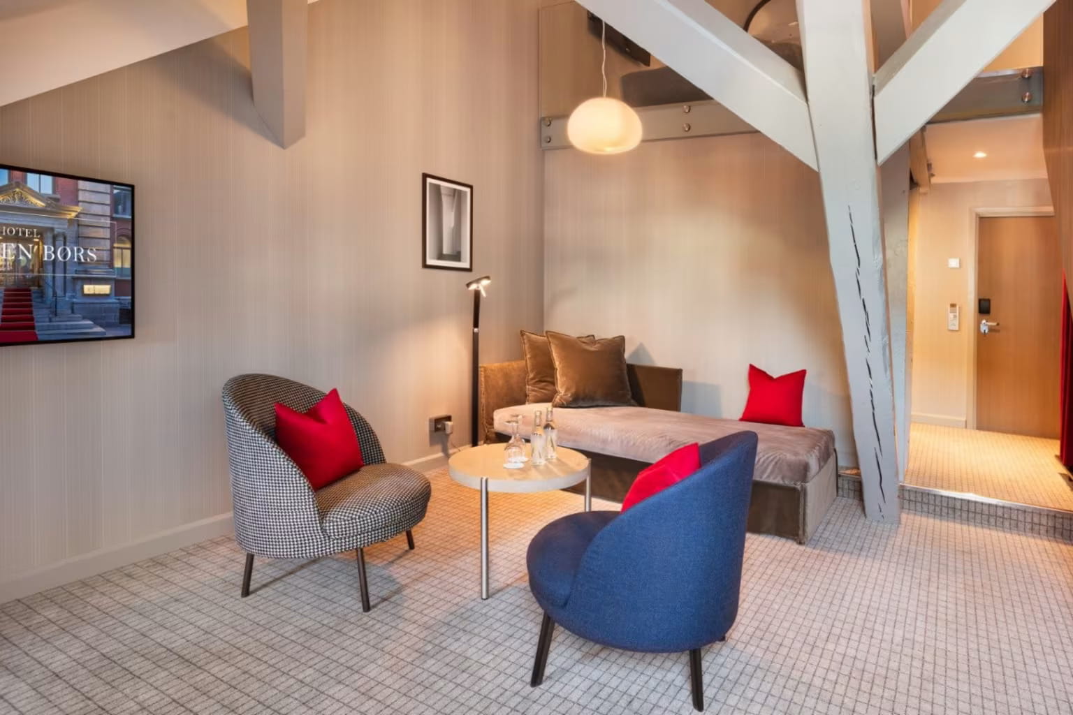 Custom designed furniture, combined with modern Scandinavian design, gives our interiors a unique character. Our rooms range from standard single rooms all the way up to a 54 m2 suite with harbour views. Our suites are in a class of their own, not least the one which is located in what was once the office of the head of the stock exchange.
